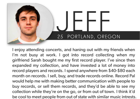 Record Pal is a mobile application designed to connect record collectors, with one another. Using user location, to help collectors connect with people in their area, or help if you're planning to travel or visiting certain cities. Record Pal takes the hassles of selling groups from social media, and makes it a 1 on 1 personal buying, selling, and trading experience. The problem I faced is there is currently no other applications in comparison with Record Pal, which also works in my advantage to being the first of its kind.